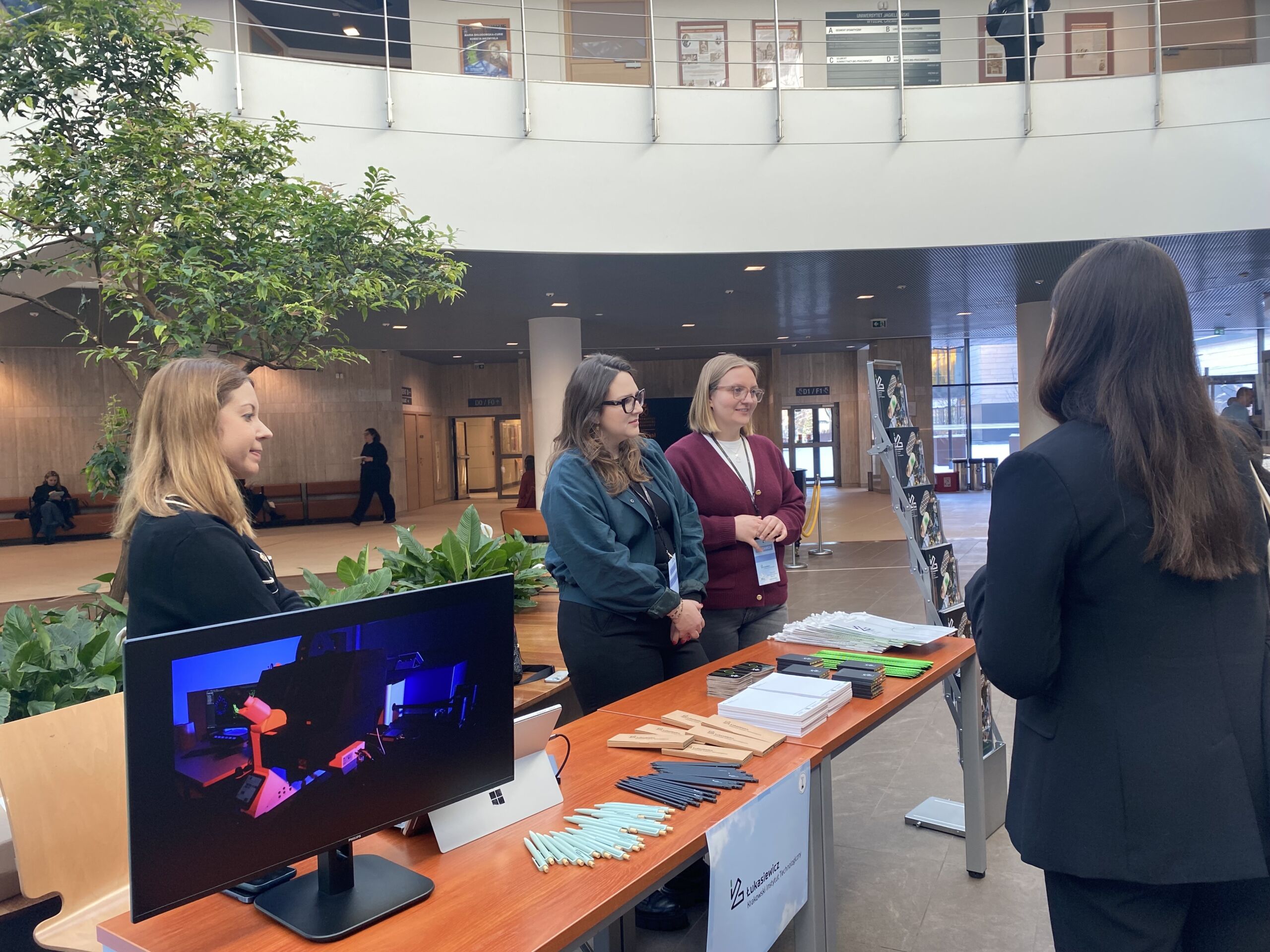 Za merytoryczną obsługę stoiska Łukasiewicz – Krakowskiego Instytutu Technologicznego odpowiadały badaczki z Centrum Technologii Biomedycznych – dr Joanna Budziaszek oraz dr Agata Barzowska-Gogola. Uczestnicy konferencji mieli okazję porozmawiać z nimi o prowadzonych badaniach, nowoczesnych rozwiązaniach z obszaru chemii i technologii biomedycznych, a także o możliwościach współpracy naukowej oraz rozwoju ścieżki kariery w instytucie badawczym. Bezpośrednie rozmowy z naukowczyniami spotkały się z dużym zainteresowaniem studentów i stanowiły cenną okazję do wymiany wiedzy oraz doświadczeń.